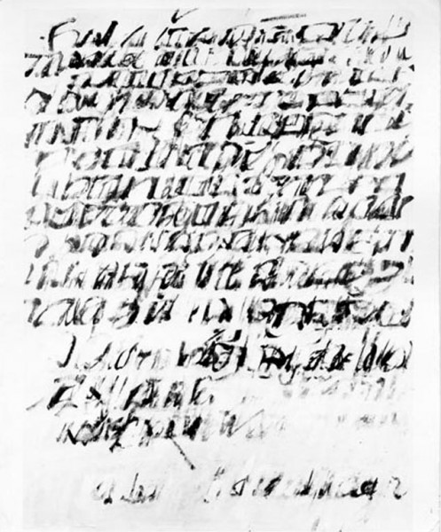 My calligraphic paintings have an ancestry in the paintings of Mark Tobey. I was also looking at Bradley Walker Tomlin’s paintings with admiration. I first saw Cy Twombly’s work at Leo Castelli’s Gallery sometime in 1963. By then I had completed my series of calligraphic paintings of “writing” and was incorporating images of paintings. See Double Landscape and Dutch Landscape.My 1963 show at Allan Stone Gallery included both the paragraph paintings and the paintings combining an image of “writing” with an image of a “painting.”(George Deem, email to Bruno Freeman October 31, 2007)